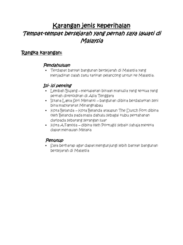 Karangan Tempat Bersejarah Di Malaysia / Saksi proklamasi indonesia bukan hanya pada para artikel ini akan membahas 10 tempat bersejarah proklamasi indonesia yang dapat anda kunjungi untuk memperingati kemerdekaan indonesia.. Bangunan gereja ini sempat hancur karena serangan bom penjajah belanda pada tahun 1945. Bukan hanya sejarah penjajahan saja yang terjadi di surabaya. Bangunan bersejarah di negara kita amat perlu dikekalkan demi generasi yang akan datang. Koleksinya sangat lengkap, dan bahkan kamu bisa ikut tur gratis keliling bangunan bersejarah di surabaya lho. Objek wisata alam terbaru, kekinian dan paling hits untuk liburan yang lebih berkesan.