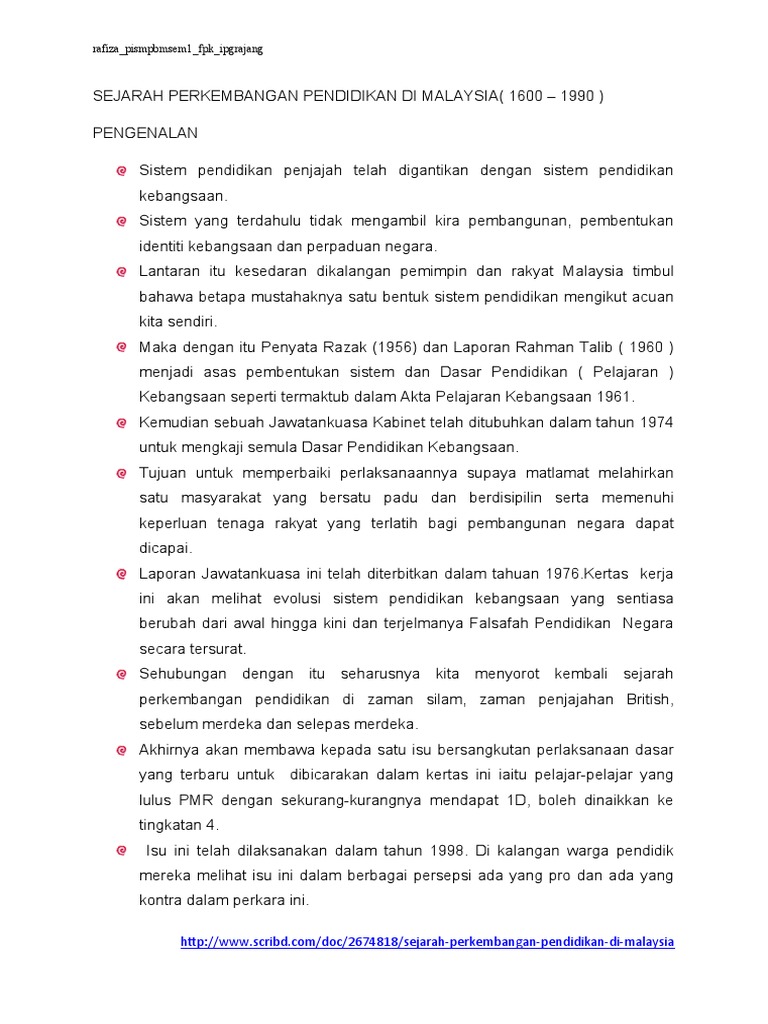 Sejarah pendidikan di malaysia by siti rohayu rohan 101848 views. Semestinya kita bisa belajar banyak dari sejarah. Perkembangan perkembangan ini memberi perubahan kepada sistem pendidikan di semenanjung malaysia. Berikut ini akan dibahas secara rinci mengenai. Walaupun begitu, anda juga perlu mengetahui sejarah dari perkembangan teknologi yang terjadi di dunia.